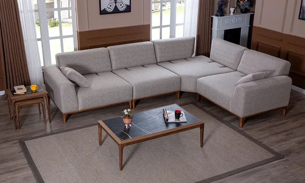 ÖZELLİK AÇIKLAMA Takım İçeriği 1 adet köşe koltuk takımından oluşmaktadır. İskelet Özelliği Fırınlanmış kayın ağacından üretilmiştir. Kumaş Özelliği Silinebilir ve leke tutmaz kumaş kullanılmıştır. Sünger Özelliği Yumuşak Konfor sünger kullanılmıştır. Yatak Özelliği Yatak Olma Özelliği Bulunmaktadır. Ürünün Bakımı Nemli bir bezle temizleyiniz. Direkt güneş ışığından koruyunuz. Sıcak yüzeylerin ve suyun uzun süreli yüzeye temasından koruyunuz.